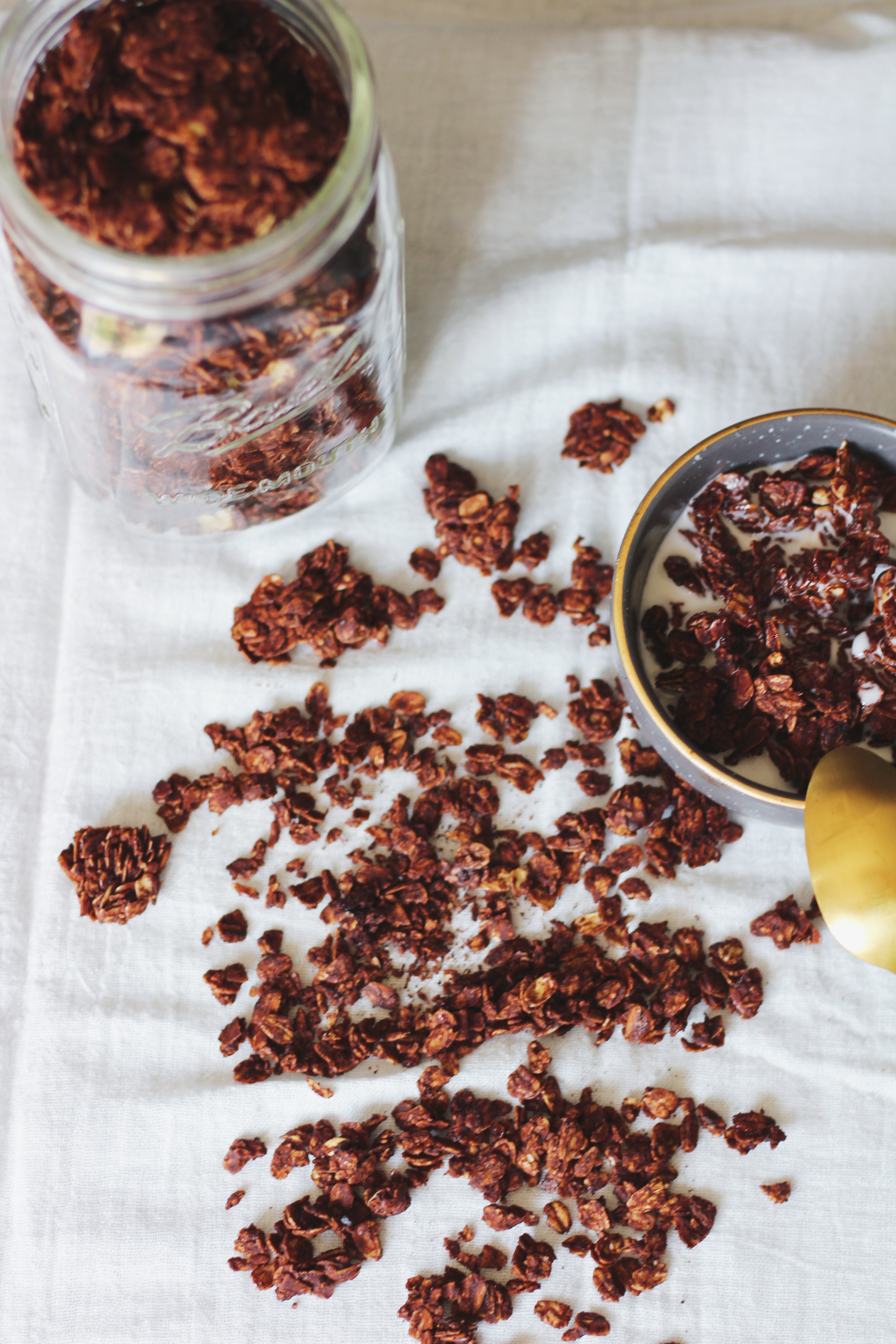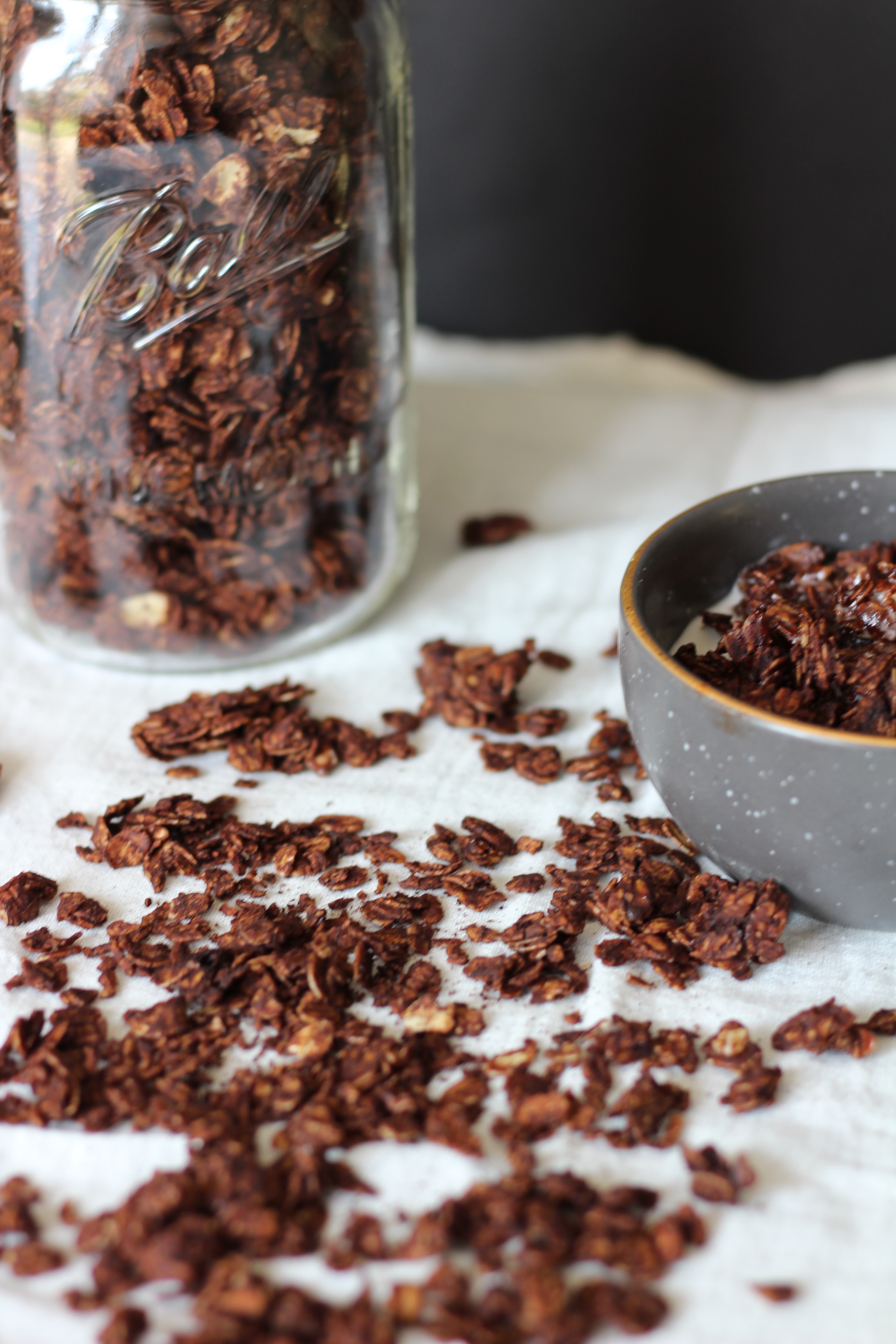 Jessie here. Back with another recipe. Now, I don’t know about you, but I. LOVE. GRANOLA. I wasn’t always a huge granola fan, but when I tried Purely Elizabeth granola, I fell in love. Unfortunately, buying pre-made granola can be expensive (especially if it’s gluten free and full of clean ingredients). So, in my mission of making as much of our food as possible from scratch, I set out to start making granola and I came out with this decadent Salted Chocolate Granola. It is free from gluten, dairy, and refined sugar (and also tastes like cocoa pebbles… shhh).